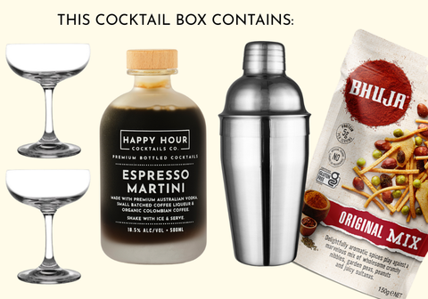 A sophisticated and indulgent cocktail box designed for coffee and cocktail enthusiasts alike. This curated set is a celebration of the classic Espresso Martini, delivering an exquisite blend of rich espresso and premium spirits right to your doorstep.